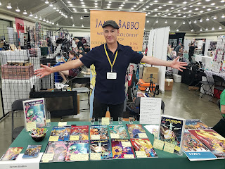 My new books THE BABY WHO FELL FROM SPACE and GOLDENGIRL AND THE PARTY #2 debuted at the con to rave reviews from pros & attendees. Both with art by Antonio Brandao and colors from me, the first is a kid friendly tale about a baby alien dropped off on a planet for day care but forced to deal with giant Cthuloid monsters! The second is my tribute to the late hip-hop artist MF Doom. Aliens are trying to abduct rapper Kaiju Boy and only GoldenGirl can find out why and protect him.